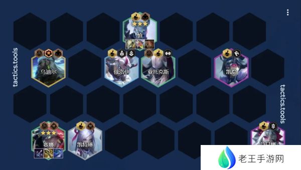 1.阵容组成:凯特琳、贾克斯、慎、赛娜、亚托克斯、俄洛伊、凯隐、莫甘娜(后期乌迪尔→贾克斯)