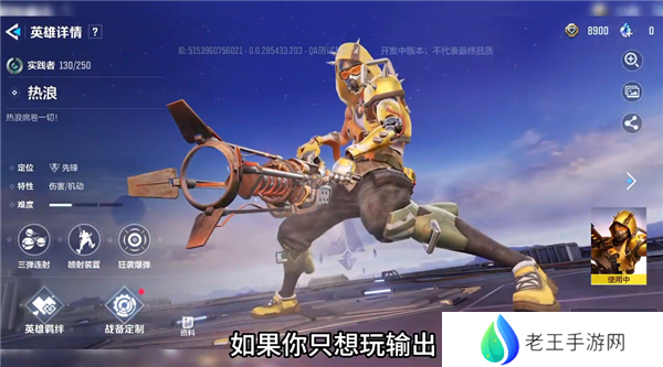 初始角色“热浪”,定位为先锋,属于输出类职业,如果你只想玩输出的话,这个角色可以一直练下去;