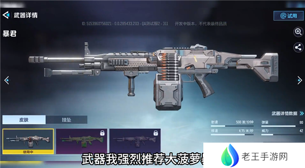 【暴君】是所有武器中弹量最多的机枪,在敌人有短时间无敌的时候虽然32发的【神将】射速和移速够用但是换弹的话基本也就凉了。而且【神将】的威力不如【暴君】,用超强的火力可以碾压一切。