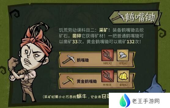 一把普通鹤嘴锄可以凿矿33次,黄金鹤嘴锄可以凿矿132次。