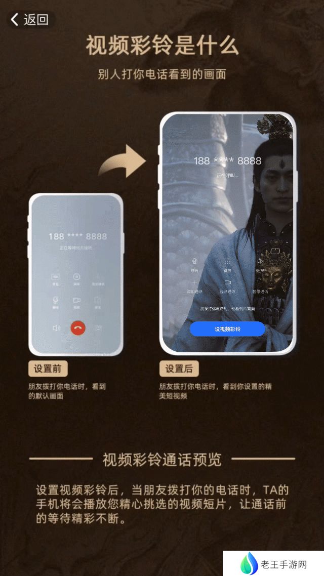 你设置后,别人就可以在给你打电话的时候看到黑神话中的炫酷场面和经典人物啦