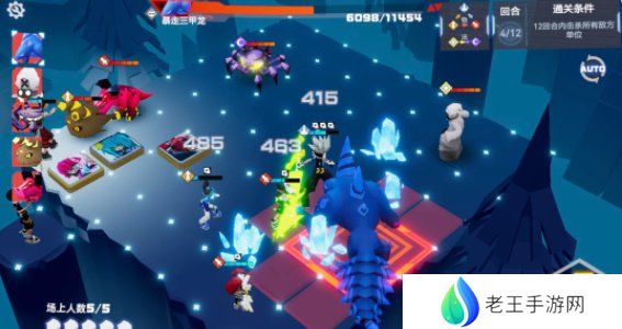 4、第四回合:复活一个肉一点的炮灰把左边怪物拉回来,强化残血,继续集火,雷狮有小技能就用,炮灰可以提供费用。