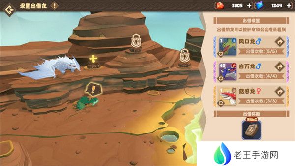 2、进入育龙温泉后,点击右下角的“出借”按钮,可以设置自己出借的龙,成功出借可以获得龙之石为奖励,每周获得出借奖励的龙之石上限为200个。