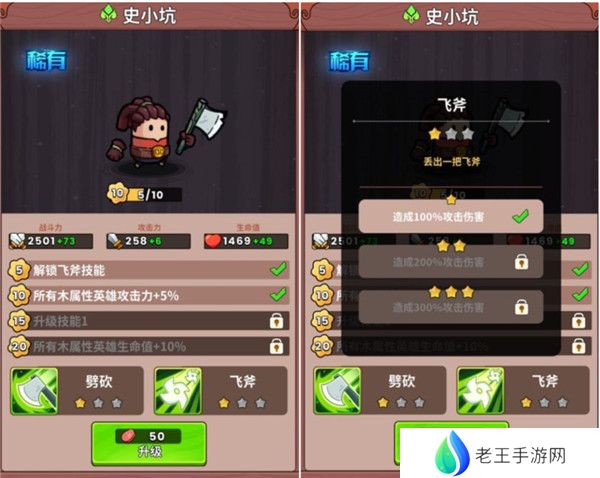 属性:木属性英雄,升级英雄提升水属性伤害和生命值