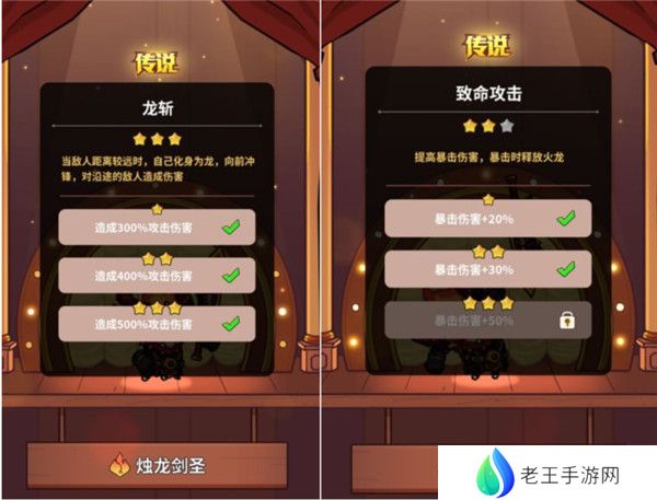 致命攻击:提高暴击伤害,暴击时释放火龙,暴击伤害+50%