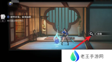 1、首先,展开地图,进入玲珑阁的废墟场景,一旦抵达指定位置,请点击屏幕上显示的蓝色标记。