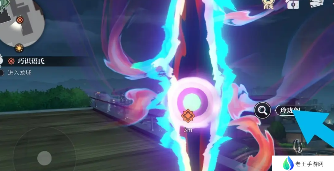 1、进入游戏后打开地图,然后来到火锅店天台点击玲珑阁