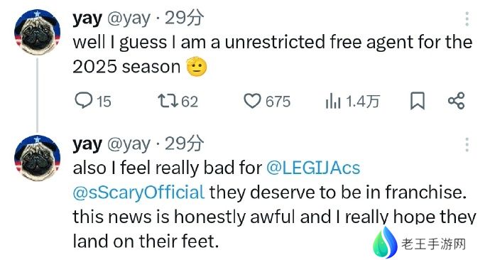 我想我在2025赛季又成为一名完全不受限制的自由选手了,如果LEGIJA(Bleed主教练)和crazyguy(Bleed指挥)不能到有资格参加顶级联赛的队伍,我想我会替他们难过。BLEED被踢出VCT的消息太糟糕了。