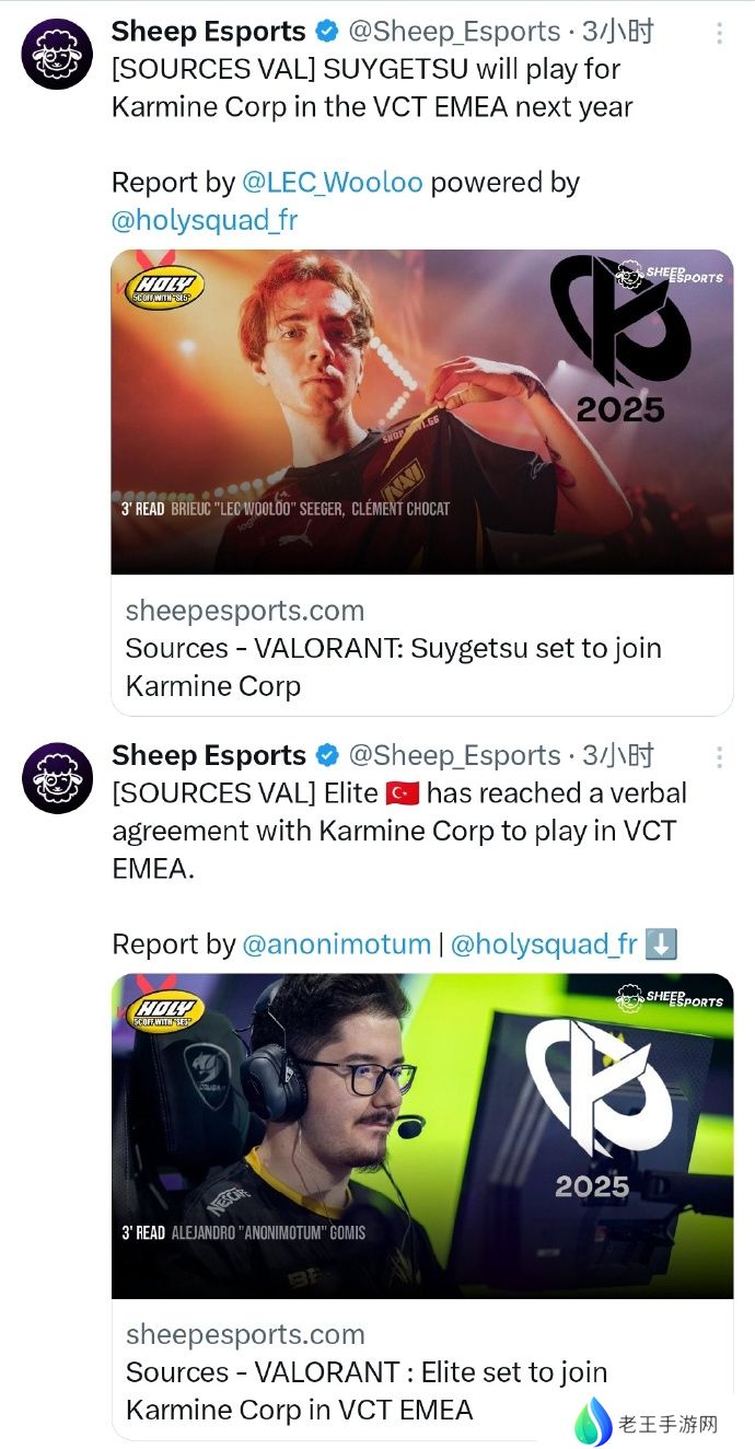 据外媒Sheep Esports报道,消息人士透露NAVI的SUYGETSU和BBL的Elite将在下赛季转投KC战队。