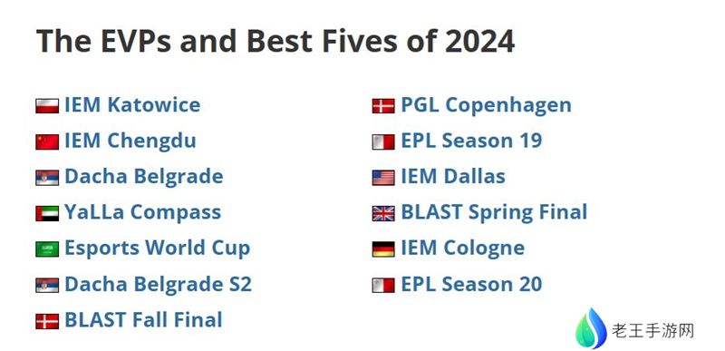 今年统计EVP及黄金五人的赛事如下: