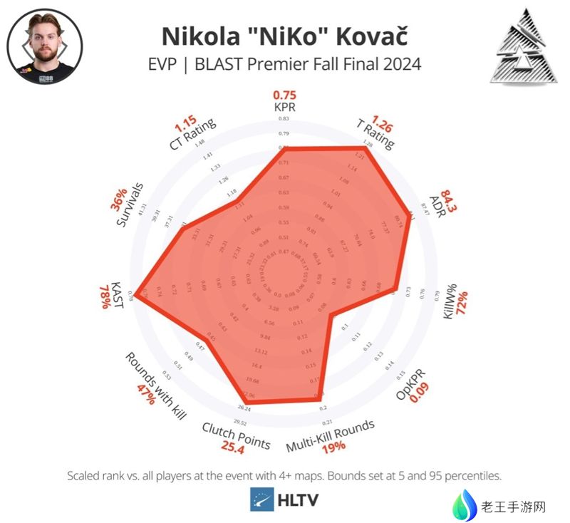 NiKo在数据上并不总是那么占优势,但他在拉锯回合中的多杀和他对地图的超高控制力以迫使对手转点等操作,都让人眼前一亮。