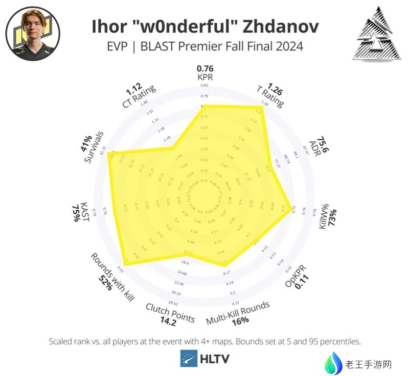 w0nderful稳定而保守的狙击风格通常是Natus Vincere体系和步枪手接管比赛的基础。但在丹麦的决赛之前,他以1.40的rating领跑全场。