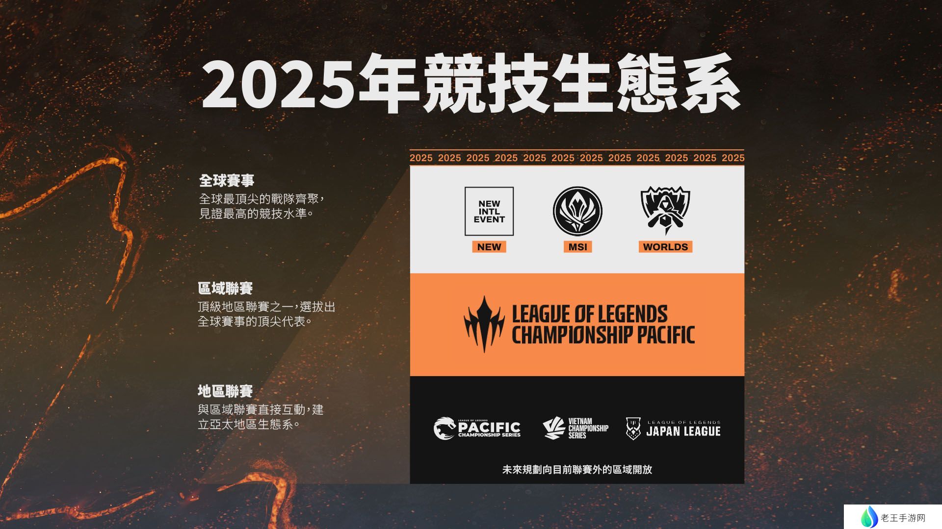 LCP将作为亚太生态系统中的顶级区域赛事,并成为明年该地区队伍参加全球赛事的唯一途径。位于LCP之下的是PCS、VCS和LJL。它们将继续在国内运营,通过升降级赛寻找最佳队伍,争取作为特邀队伍参赛。关于这项升降级赛的更多细节将在不久后公布。