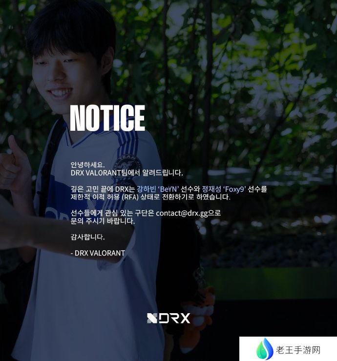 DRX官宣:BeYN和Foxy9以受限制的自由选手身份寻求新的机会。