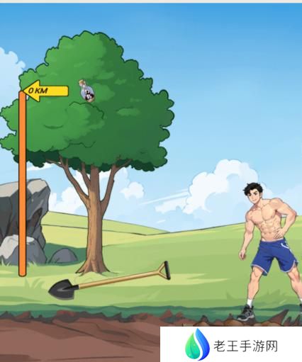 1、挖穿地球帮他挖到地球对面这一关需要拖动铲子和书上的大力丸到男人