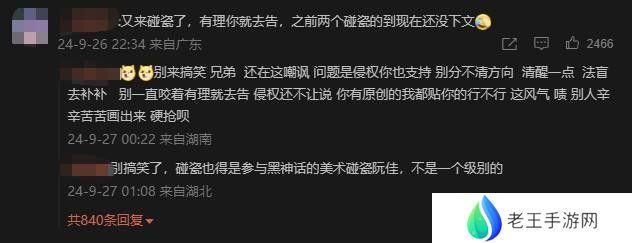 在评论中,有网友支持“阮佳”维权,并要求游戏科学道歉赔钱:“有点意料之中的感觉。。看道不道歉给不给钱吧”、“没和作者本人打过招呼就直接用于商业研发的话我觉得确实是过分了”。不过,也有网友认为“阮佳”只是在单纯的蹭热度,此前声称《黑神话:悟空》抄袭的大有人在,但都没了下文:“又来碰瓷了,有理你就去告”。
