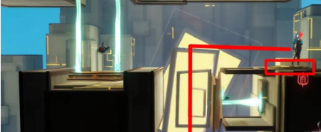 1、抵达挑战界面后,站立于左下角的机关位置,向右行进直至抵达右上角的二层区域。