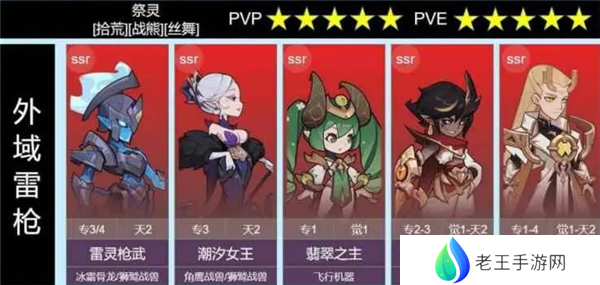 阵容解析:外域又一强力阵容,主养雷枪,女王加速,让雷枪更频繁释放湮灭雷龙进行控制和叠加雷霆咒印,黑龙抗伤,也能与青铜一起拉人聚怪,让雷枪打出更多AOE和控制,翡翠挂件,提供复活,低练度奶量基本无视,可更换其他控制或保护类英雄,雷枪pvp主动用1技能大招,高倍率单伤更快减员