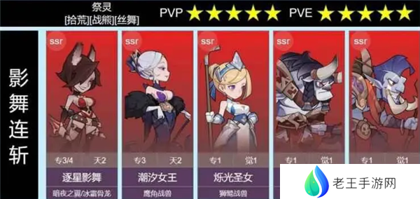 阵容解析:优秀的技能机制和被动爆伤增幅让影舞在多个版本都名列输出前茅,标配坐骑暗夜之翼。极限养成,牛头需要一定坦度,圣女主要是解控,可更换为图腾祭祀。潮汐当副C养,不浪费影舞专武buf,奸商针对物理远程C,给减伤盾,且吃雷鸣天星和盟约,对方为邪狩近战C可更换青铜冰女等。