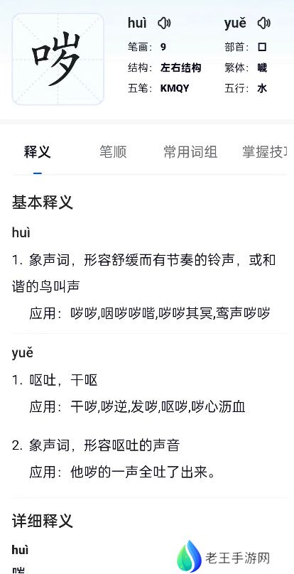 这个字就是“哕”,“哕”是一个多音字,不仅读作“yuě”(第三声)也读作“hui”(第四声)。