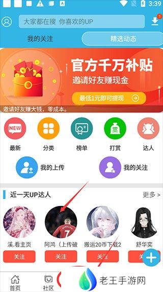 1、首先在当快站下载安装好软件,进入到主页面选择“up”功能按钮,然后点击进去找到达人排行,选择如图所示的达人。