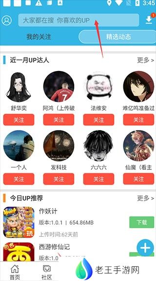 4、如果是想要找到自己想要开挂游戏的应用的话,那必须也是点击“up”功能按钮;