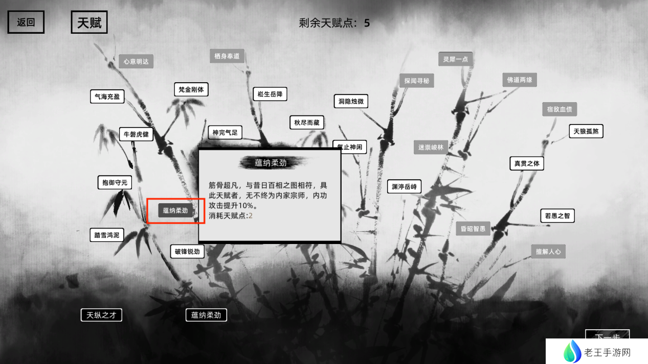 蕴纳柔劲:筋骨超凡,与昔日百相之图相符,具此天赋者,无不终为内家宗师,内功攻击提升10%。