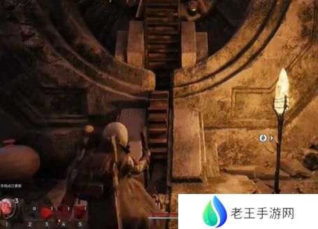 1、首先我们根据指引去拉拉杆让外面的石柱转起来。
