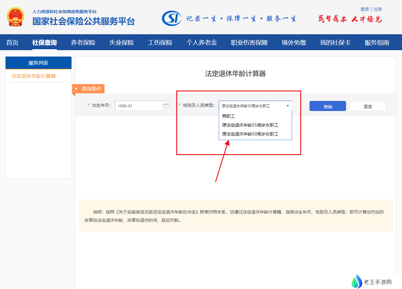 首先打开国家社会保险公共服务平台官网的法定退休年龄计算器页面:https://si.12333.gov.cn/304647.jhtml?menuguide=1