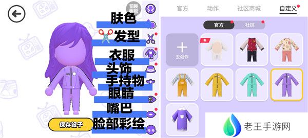 〖编辑形象〗→购买官方衣服,动作和玩家自制衣服,以及自定义更换衣服