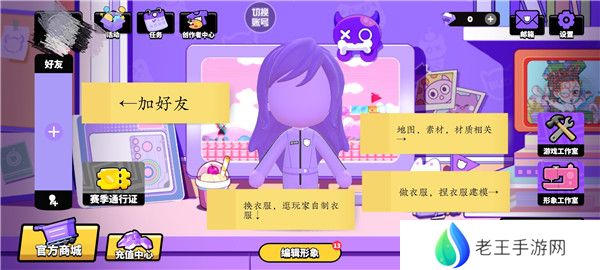 编辑形象:详尽设置,包括眉毛、耳环等,支持官方与玩家自制商品。