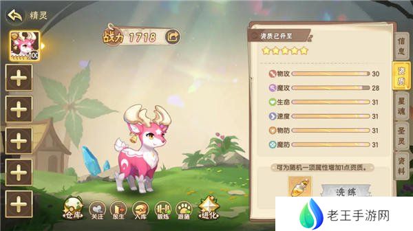 在精灵信息页,点击右侧资质,即可在资质面板内进行洗练