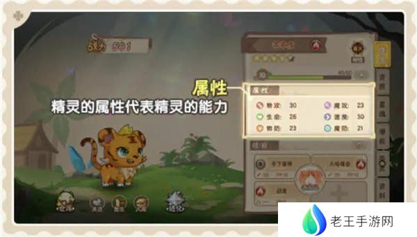 精灵属性代表了一只精灵的战斗能力,共6个分类:物攻、魔攻、生命、速度、物防、魔防