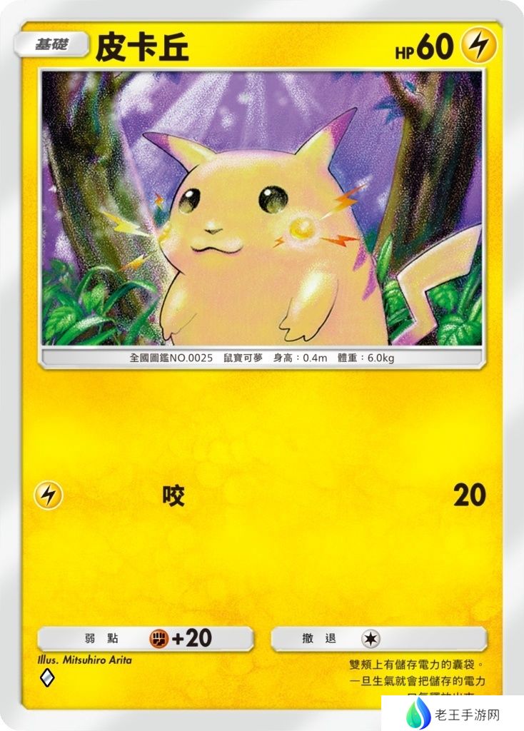 右上方为HP、卡面中的「咬」为皮卡丘的招式