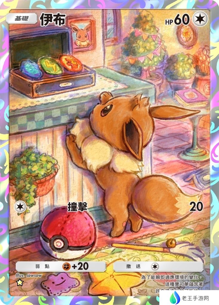 卡牌中用圆圆的眼睛望着神奇石头的伊布,样子非常可爱。在卡牌当中,也有插画占满整张卡面的特别卡牌。如果幸运遇见了这种卡牌,请务必展示给大家看看喔。