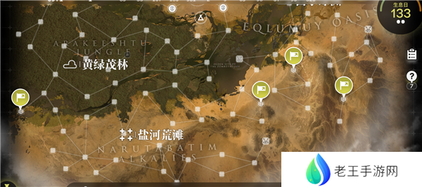 3、不断解锁地图区域,直至覆盖如图2所示的关键远征点;