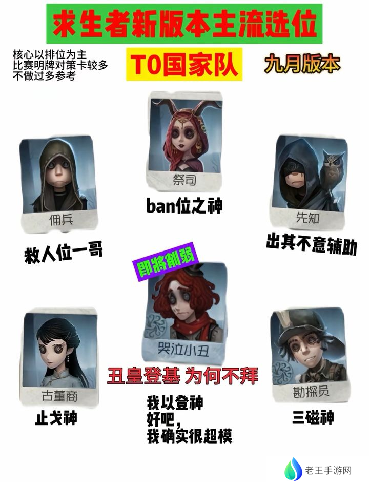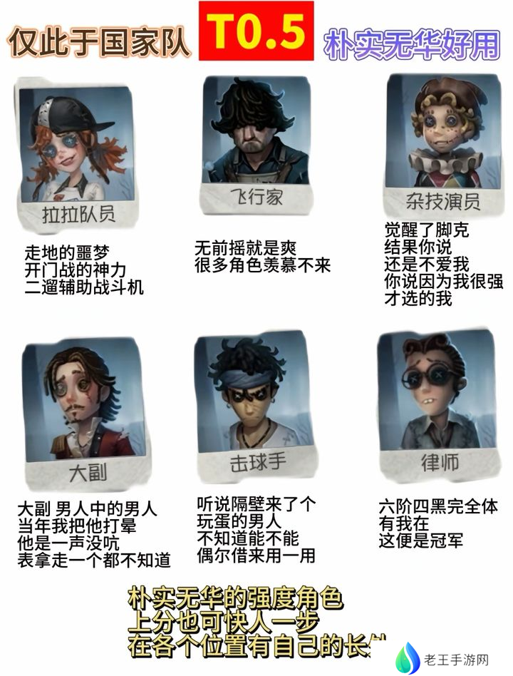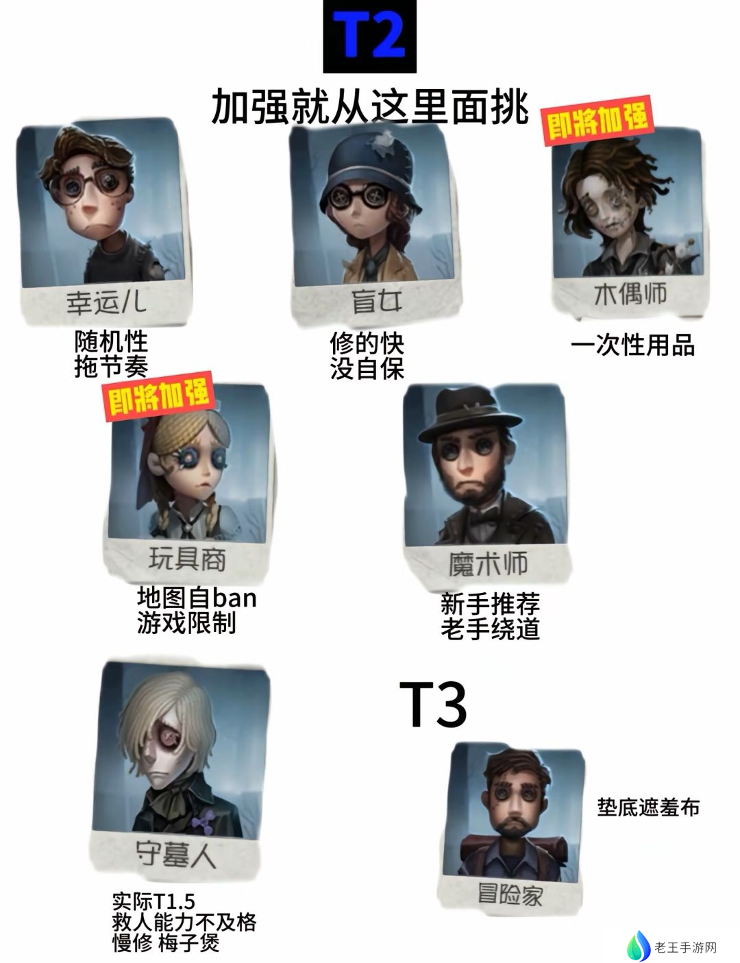 今日带来的是《第五人格》手游中各角色的求生强度排行,新版本的主流选位参考本榜单即可,榜单从T0开始到T3依次进行排行。