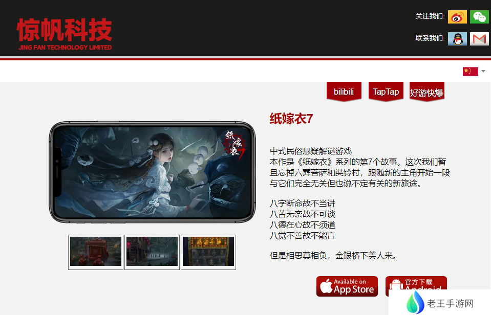 在官网上可以看到所有的惊帆科技解谜作品,包括《纸不语》《无间梦境新版本 纸嫁衣系列第6部》《无间梦境 纸嫁衣系列第5部》《黑暗笔录》《纸嫁衣4红丝缠》《纸嫁衣3鸳鸯债》《纸嫁衣2奘铃村》《纸嫁衣》《十三号病院》,这些都是十分优秀的国产解谜佳作,感兴趣的玩家可以都体验一番。
