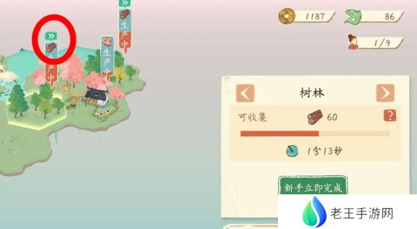 1.新手期间我们在生产过程中,一般45秒(有的比较长注意看绿色提示)后就可以快速完成减少生产时间!增加游戏进度!