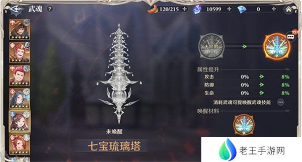 魂师星级达到5星后消耗专属道具可以唤醒武魂提升战力。