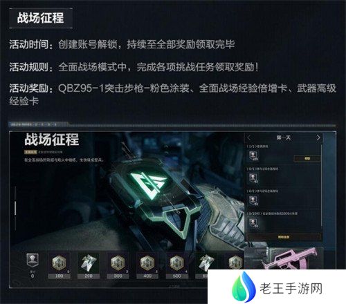 奖励:QBZ95-1突击步枪-粉色涂装、全面战场经验倍增卡、武器高级经验卡