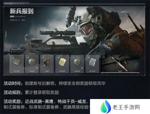 奖励:近战武器-黑鹰、特战干员-威龙、进阶安全箱3天权限卡、精锐制式装备券、标准制式装备券、武器高级经验卡
