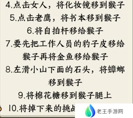 7、要先把工作人员的豹子皮移给猴子再将金鱼移给猴子