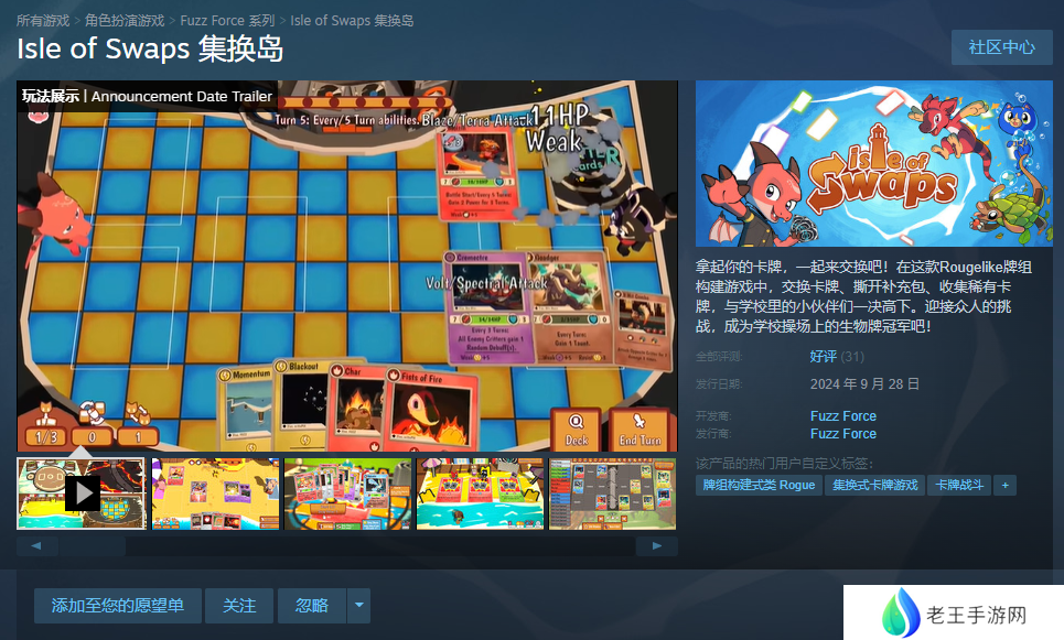 《集换岛》是Fuzz Force制作并发行的一款集换式卡牌游戏。而这款游戏想要下载还是比较麻烦的,下载的第一步就是安装Steam平台,然后注册账号登录,并且搜索《集换岛》,然后点击购买,之后点马上开玩即可。