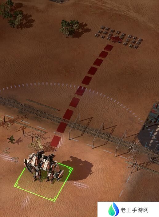 单位有两个攻击的权重,一个是距离,一个是转向时间。单位会根据距离和转向时间来计算他最先能打到哪个单位,这就是他的攻击对象。点击单位显示的红色箭头即单位的进攻方向,周围一圈白线则是它的攻击范围。