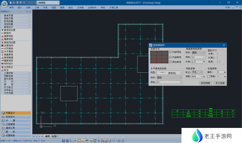 接地线线型自由选择,可随意绘制主接地网,也可根据建筑物外轮廓自动生成接地网。