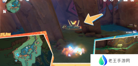 11、洞窟西边:附身峭锋龙攻击下图所示的波纹,注入燃素后进入,即可获得珍贵宝箱。