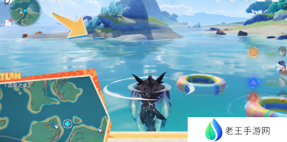 6、【流泉之众】东边:拾取岸边的游泳圈,放到下图所示的游泳圈旁,获得A级评分即可得到宝箱。
