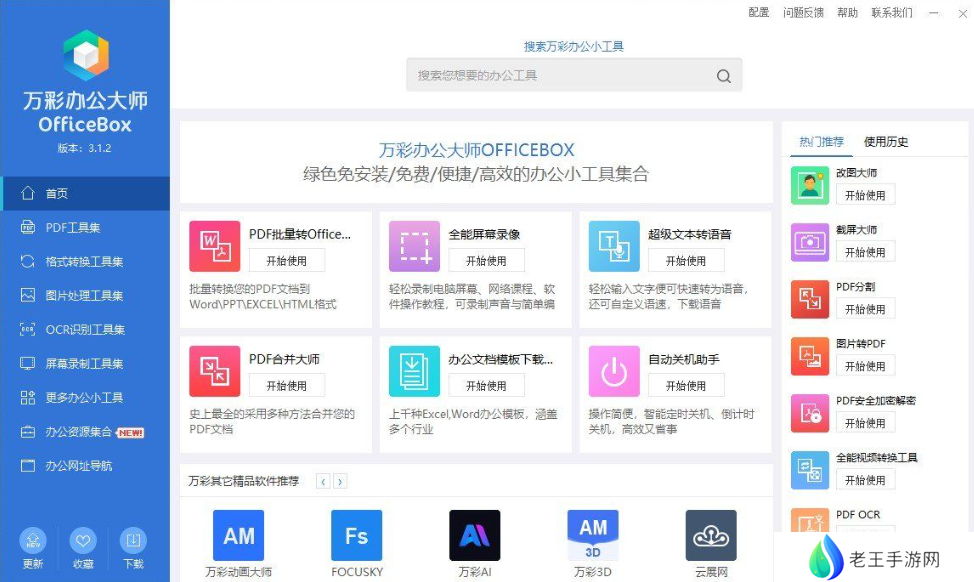 1.万彩办公大师是必备的日常工作神器,几乎可以满足您对各种办公工具的需求。
