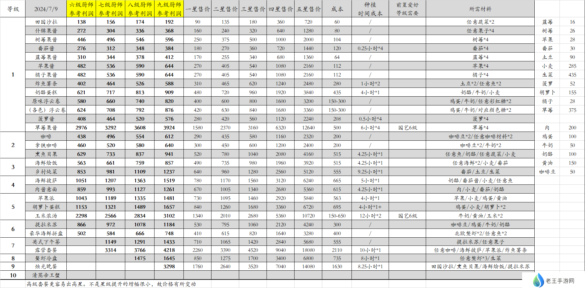 《心动小镇》中烹饪美食然后进行出售是一个很不错的赚钱方式,食材的获取是种植和收集等方式,今天带来的就是心动小镇的菜谱大全和具体的利润。